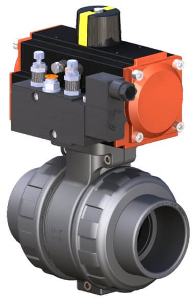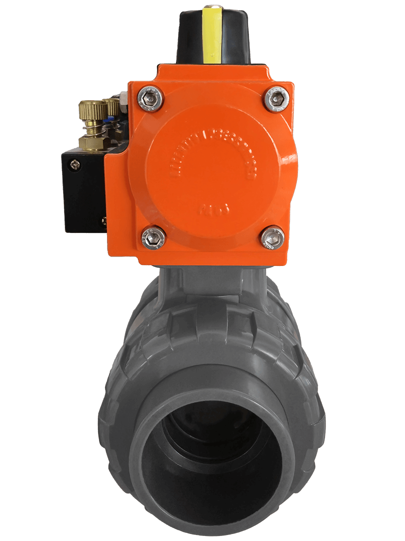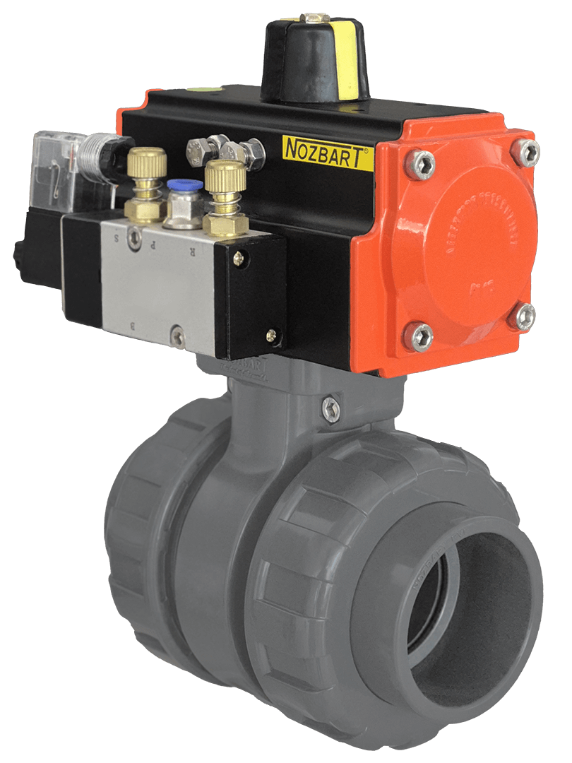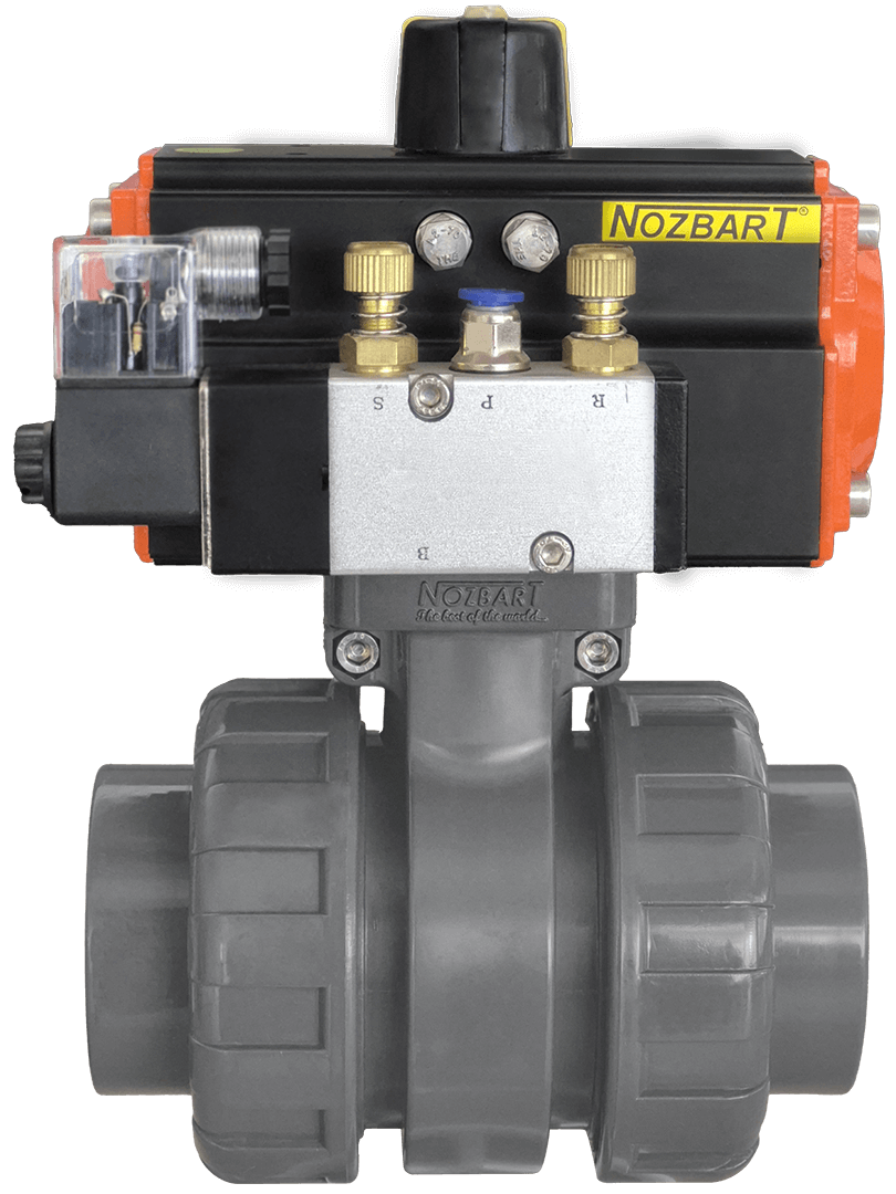 NOZBART® U-PVC Single-Acting Pneumatic Actuated Double Side Threaded Ball Valves